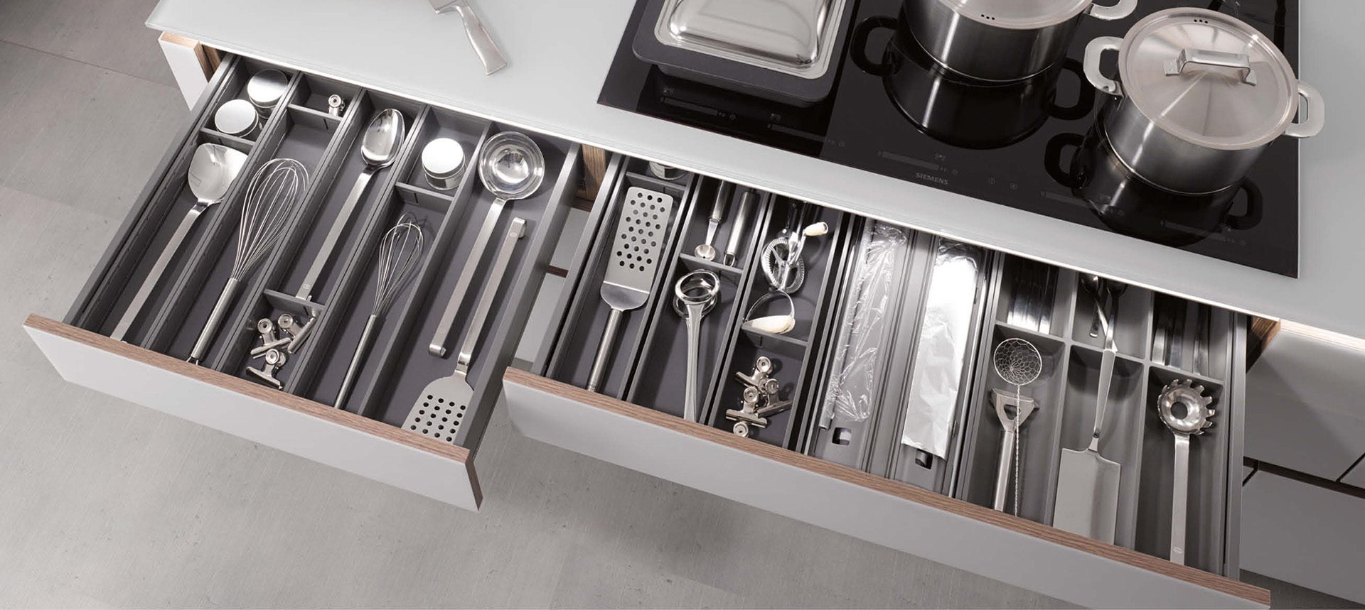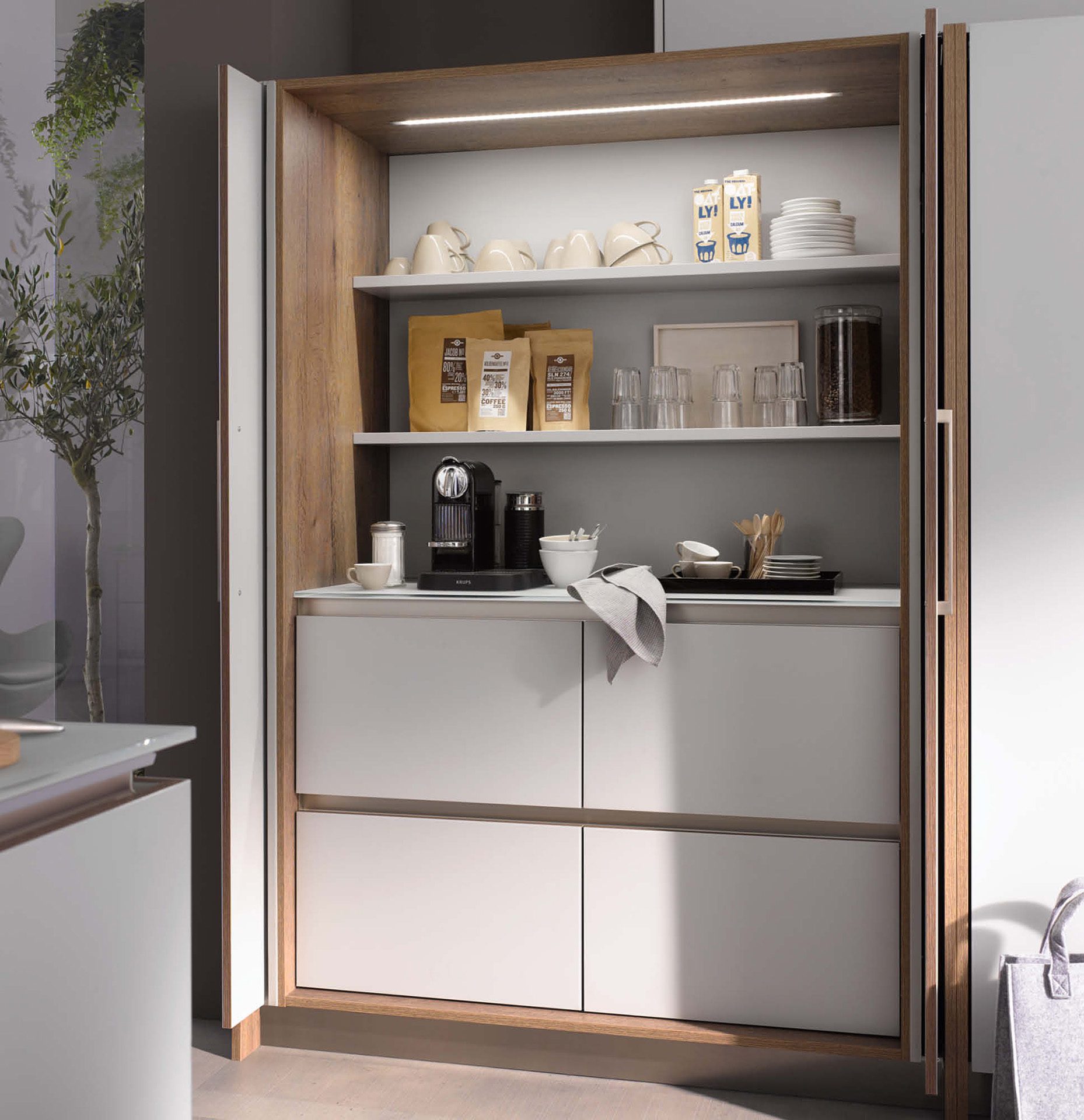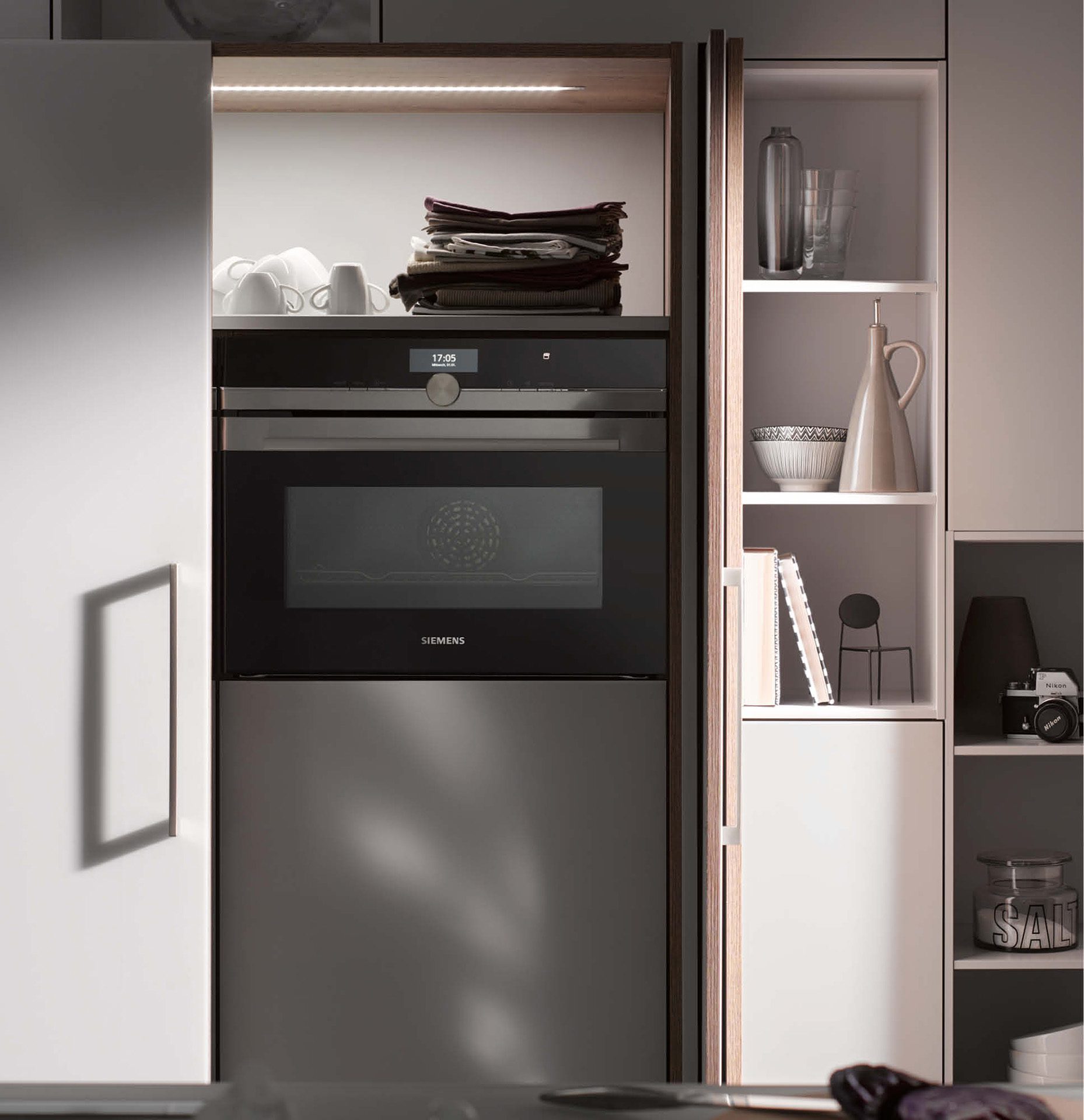Verrassende highlights in het geheel én in het detail. De geruisloos in de zijwand verdwijnende Pocket-Door overtuigt niet alleen in gesloten toestand. Schoonheid, elegantie en nut in een ware wooncultuur.
